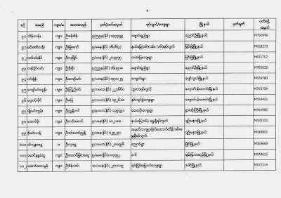 အမည္ ၊ က်ား ၊ မ ၊ အဘအမည္ ၊ မွတ္ပံုတင္ နံပတ္ ၊ လိပ္စာ ၊ ျမိဳ႔နယ္ ၊ မွတ္ခ်က္ ၊